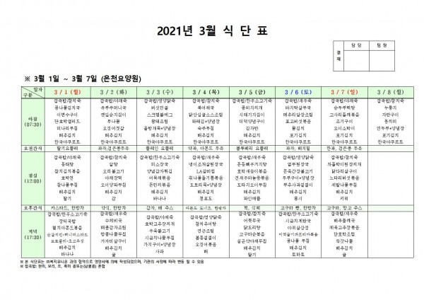 3월 첫째주 식단표 페이지 정보 작성자 은천노인복지회 작성일21-02-25 16:45 조회142,676회 댓글0건 관련링크 이전글 다음글 목록 답변 본문 식단표 [이 게시물은 은천노인복지회님에 의해 2021-03-12 17:18:24 공지사항에서 이동 됨] 이전글 다음글 목록 답변
