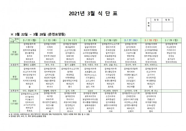 3월 넷째주 식단표 페이지 정보 작성자 은천노인복지회 작성일21-03-18 17:41 조회141,081회 댓글0건 관련링크 이전글 다음글 목록 답변 본문 3월 넷째주 식단표 이전글 다음글 목록 답변