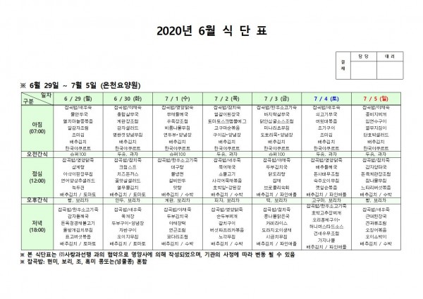 7월 첫째주 식단표 페이지 정보 작성자 은천노인복지회 작성일20-07-08 11:02 조회166,601회 댓글0건 관련링크 이전글 다음글 목록 답변 본문 . 이전글 다음글 목록 답변