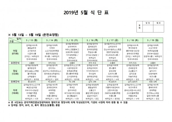 5월 둘째주 식단표 페이지 정보 작성자 은천노인복지회 작성일19-05-20 11:59 조회200,977회 댓글0건 관련링크 이전글 다음글 목록 답변 본문 5월 둘째주 식단표 이전글 다음글 목록 답변