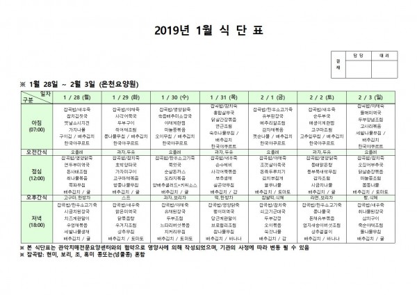 1월 넷째주 식단표 페이지 정보 작성자 은천노인복지회 작성일19-02-13 17:29 조회204,813회 댓글0건 관련링크 이전글 다음글 목록 답변 본문 1월 넷째주 식단표 이전글 다음글 목록 답변