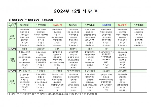 12월 넷째주 식단표 페이지 정보 작성자 은천노인복지회 작성일24-12-23 16:39 조회16,505회 댓글0건 관련링크 이전글 다음글 목록 답변 본문 . 이전글 다음글 목록 답변