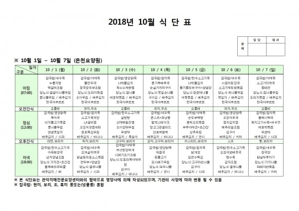 10월 첫째주 식단표 페이지 정보 작성자 은천노인복지회 작성일18-10-08 11:06 조회202,600회 댓글0건 관련링크 이전글 다음글 목록 답변 본문 10월 첫째주 식단표 이전글 다음글 목록 답변