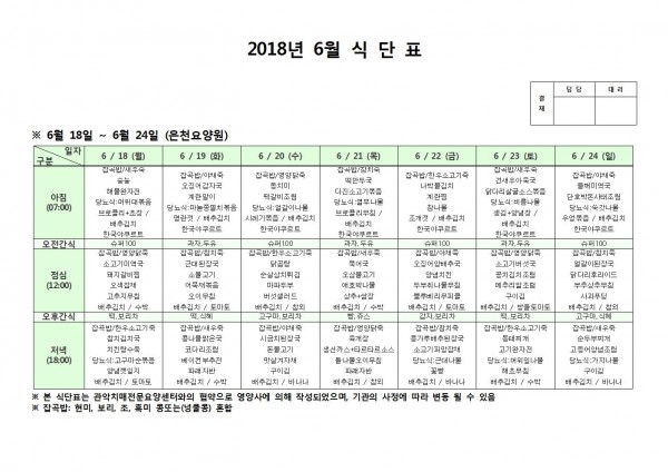 6월 넷째주 식단표 페이지 정보 작성자 은천노인복지회 작성일18-06-25 11:11 조회207,653회 댓글0건 관련링크 이전글 다음글 목록 답변 본문 6월 넷째주 식단표 이전글 다음글 목록 답변