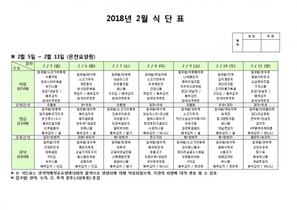 2월 첫째주 식단표 페이지 정보 작성자 은천노인복지회 작성일18-02-05 17:07 조회193,948회 댓글0건 관련링크 이전글 다음글 목록 답변 본문 2월 첫째주 식단표 이전글 다음글 목록 답변