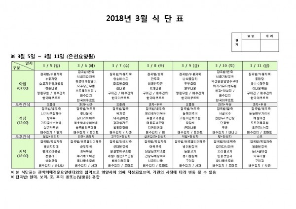 3월 둘째주 식단표 페이지 정보 작성자 은천노인복지회 작성일18-03-05 16:27 조회194,474회 댓글0건 관련링크 이전글 다음글 목록 답변 본문 3월 둘째주 식단표 이전글 다음글 목록 답변