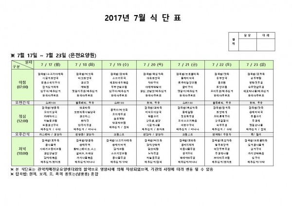 7월 셋째주 식단표 페이지 정보 작성자 은천노인복지회 작성일17-07-18 18:01 조회179,005회 댓글0건 관련링크 이전글 다음글 목록 답변 본문 7월 셋째주 식단표 이전글 다음글 목록 답변