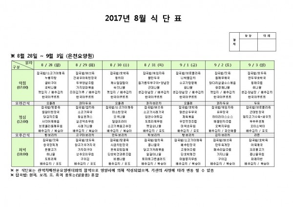 8월 다섯째주식단표 페이지 정보 작성자 은천노인복지회 작성일17-08-28 14:38 조회180,741회 댓글0건 관련링크 이전글 다음글 목록 답변 본문 8월 다섯째주식단표 이전글 다음글 목록 답변
