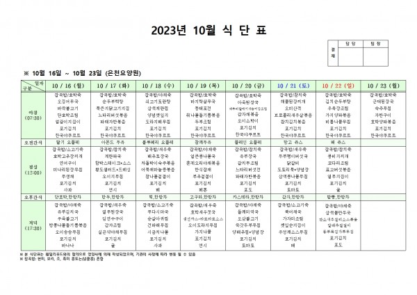 10월 셋째주 식단표 페이지 정보 작성자 은천노인복지회 작성일23-10-12 17:24 조회36,642회 댓글0건 관련링크 이전글 다음글 목록 답변 본문 . 이전글 다음글 목록 답변