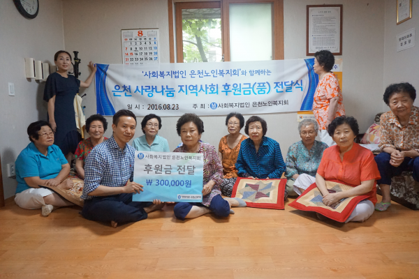 경로당 돕기 후원 페이지 정보 작성자 은천노인복지회 작성일17-01-16 16:39 조회38,207회 댓글0건 관련링크 이전글 다음글 목록 답변 본문 동대문 지역 열악한 경로당을 찾아서은천재가노인지원센터에서 후원금을 전달하였습니다.창방경로당, 전농3분회경로당, 방배경로당, 청량리현대경로당 이전글 다음글 목록 답변