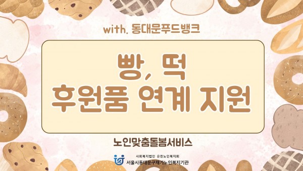 [노인맞춤돌봄서비스] 2026년 1~3월 후원품 연계 지원 페이지 정보 작성자 은천노인복지회 작성일26-04-09 16:17 조회33회 댓글0건 관련링크 이전글 다음글 목록 답변 본문 '동대문푸드뱅크'로부터 매주 월요일 빵을 후원 받고 있으며, 생원지원사를 통해 어르신들께 빵을 전달해드리고 있습니다. 이전글 다음글 목록 답변